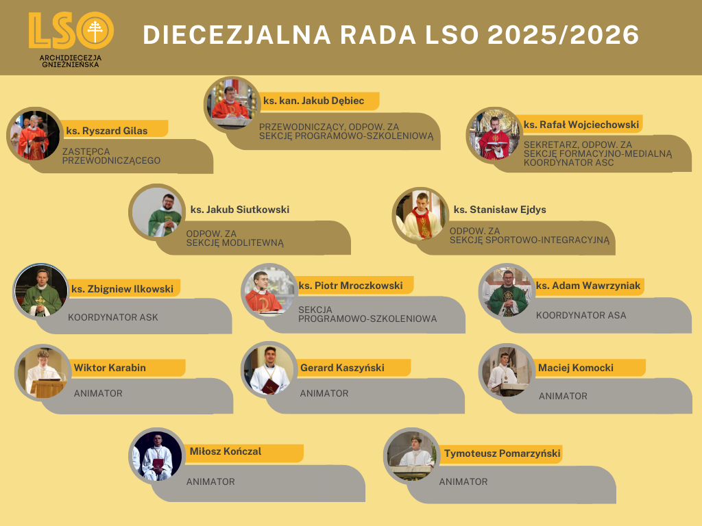 Diecezjalna Rada LSO została powołana w 2020 roku, aby jeszcze lepiej skoordynować działania całego duszpasterstwa. W skład rady wchodzą wybrani duszpasterze dekanalni i parafialni oraz animatorzy LSO, na czas jednego roku szkolnego.